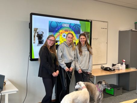 En laten we eerlijk zijn: met Peppa en Puck in het “docententeam” kan het bijna niet anders dan een succes worden. Want ja… galgo’s zijn misschien wel de beste docenten ter wereld 😉 Ze zeggen weinig, maar vertellen zóveel. Met hun zachte blik, rustige houding en indrukwekkende verhaal maakten ze direct impact in de klas.